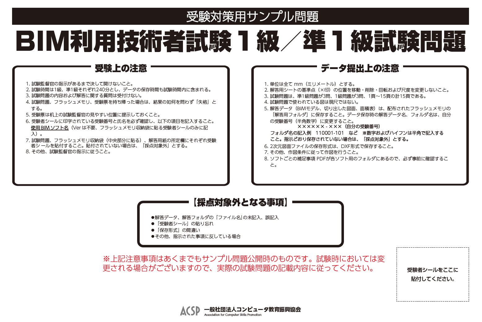 BIM利用技術者試験サンプル問題(1級・準1級共通)