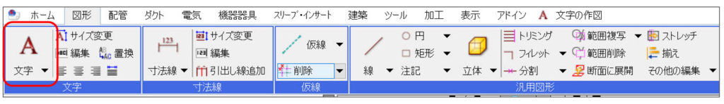 メインメニューの「配管」の「作図」から「配管」や「継手」などで入力する。
