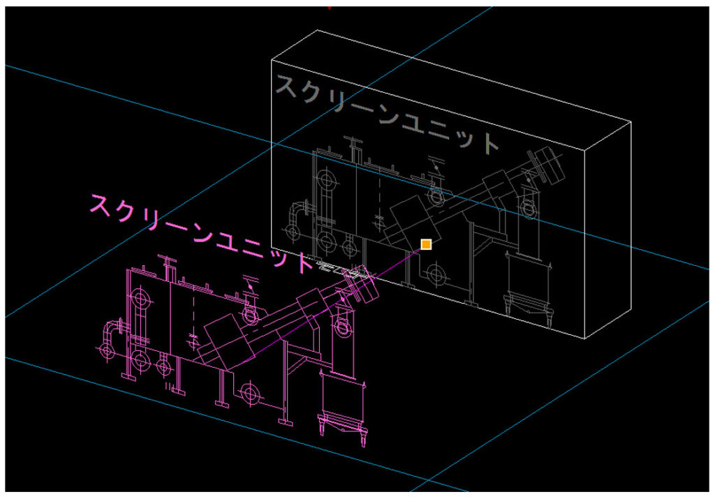 機器名称などの文字をCG表示したい場合、要素を「ビュー共通」で作図することで表示可能になる。この手法で表現した図を下記に示す。 留意点として、機器に紐づいている文字でなければ「ビュー共通」とすることで、全てのビュー(全ての図面)で表示される。