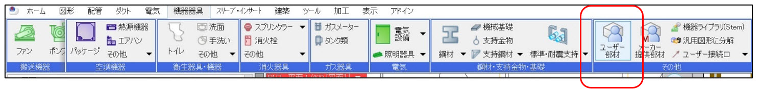 メインメニューの「機器器具」の「その他」から「ユーザー部材」で入力する。