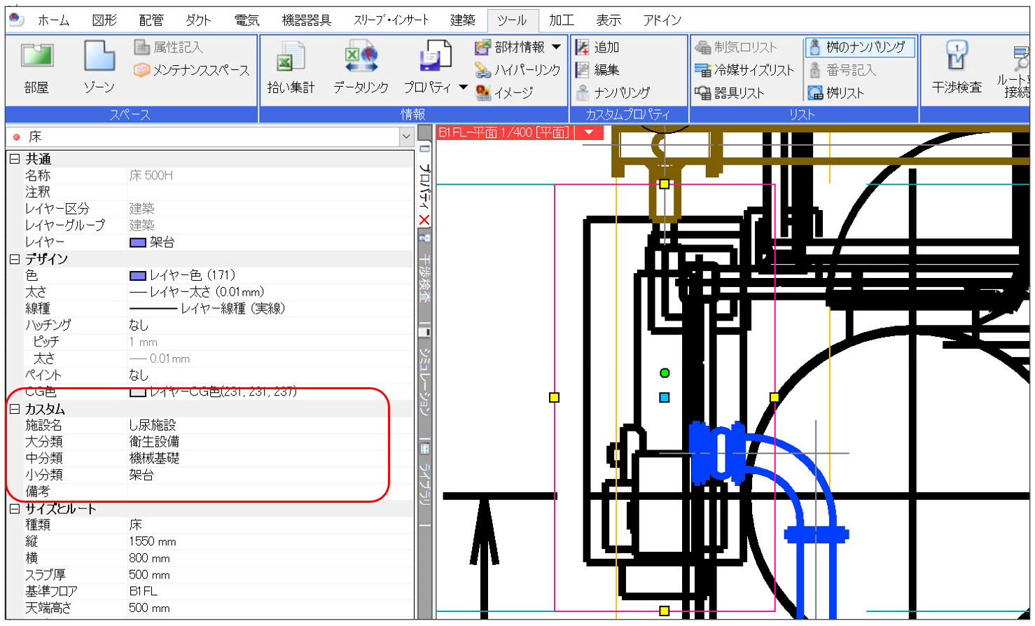 実際にRebroを使ってモデル作成のための入力を行う。入力する項目は、配管、ダクト、機器、架台。