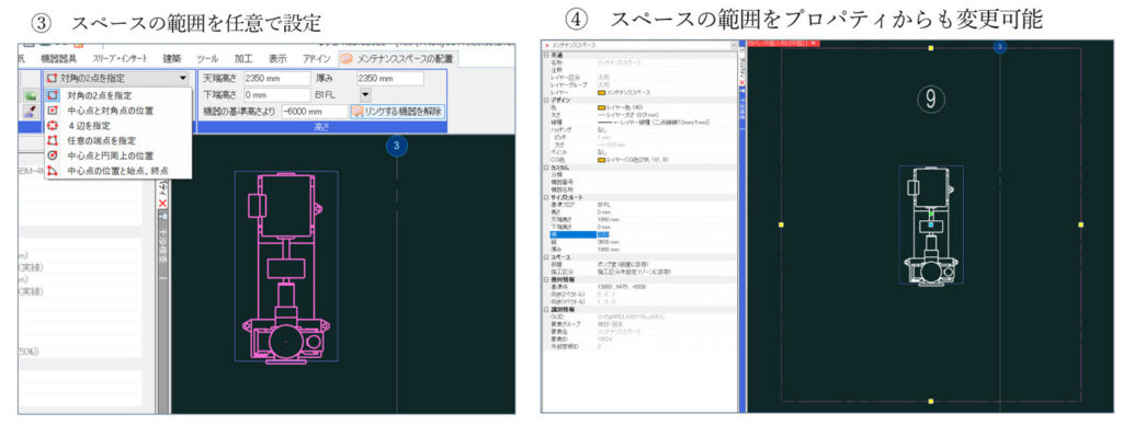 機器のメンテナンススペースは、職種間調整等で必要に応じ入力を行う。